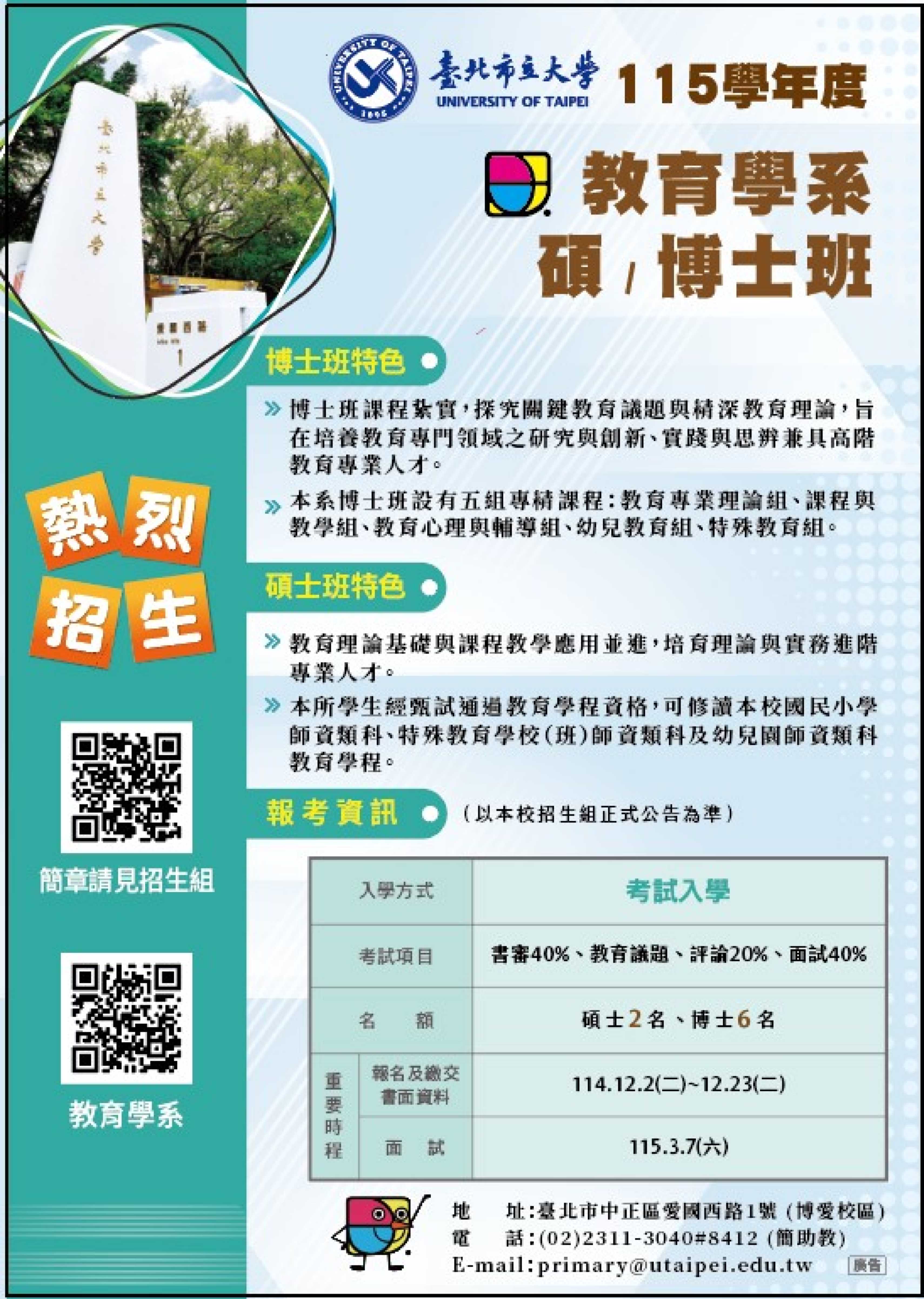 三、詳細招生資訊請參閱附件招生海報,或逕至該校招生網站 查詢。