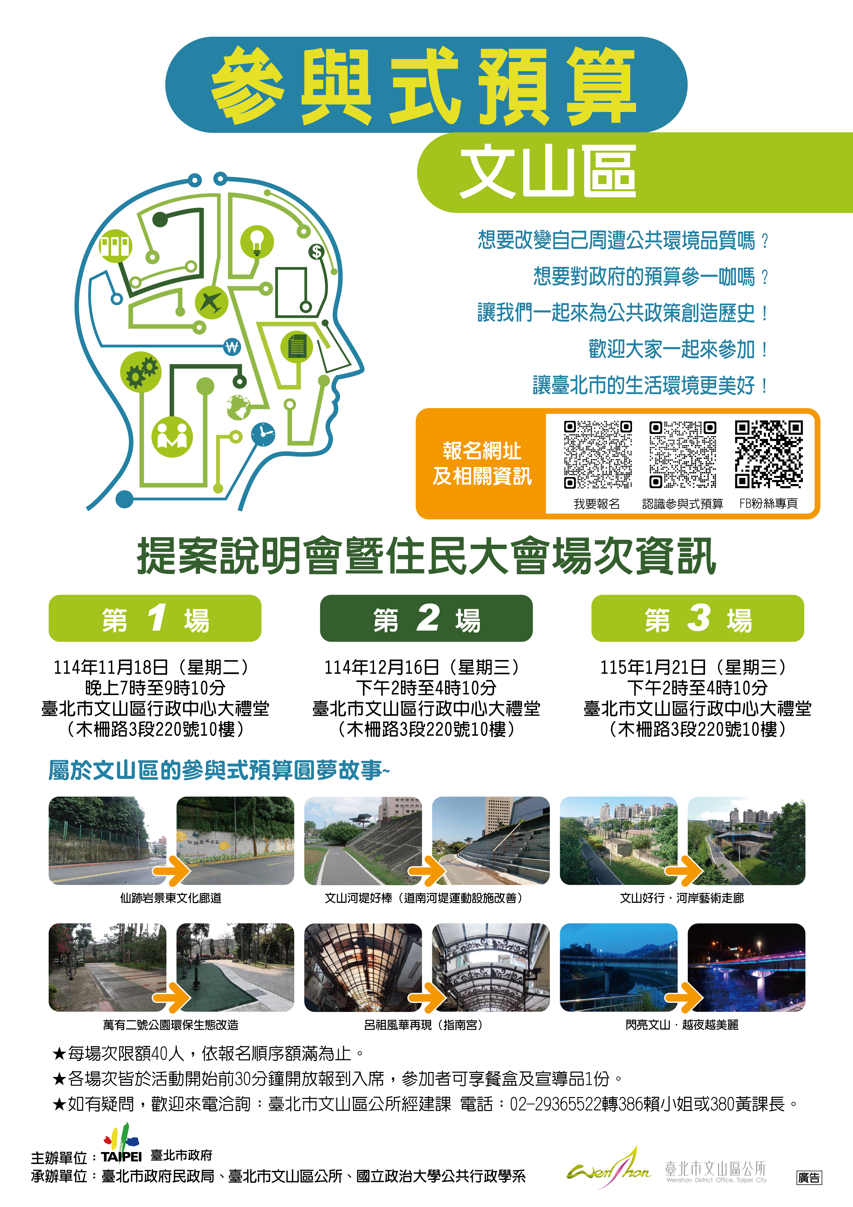 轉知臺北市文山區公所辦理115年度「參與式預算提案說明會暨住民大會」案,歡迎踴躍報名參加,檢附宣傳海報一份。