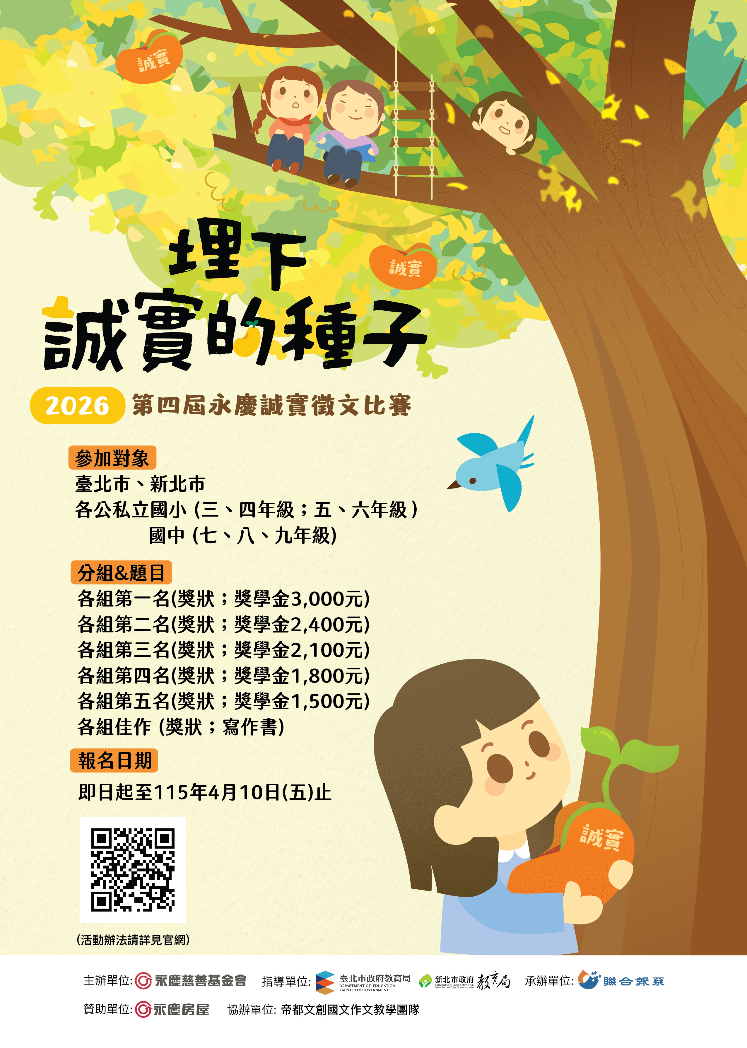 1、國小中年級組( 3、4年級):我心目中的誠實小英雄。